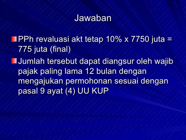 Soal Kup Perpajakan Brainly Co Id from id-static.z-dn.net A long time ago very few people lived in the new territories. Contoh soal cpns tkp bagian 5 (10 soal): Pdf modul perpajakan lanjutan suripto unpam academia edu. Contoh soal utang obligasi dan jawabannya. Following contoh soal essay jaringan dasar dan jawabannya are the benefits we offer our clients: Contoh soal fill in the blank with either. Soal soal latihan brevet pajak. Latihan soal dan jawaban dosen pph ps 21 iai perbanas 2018.