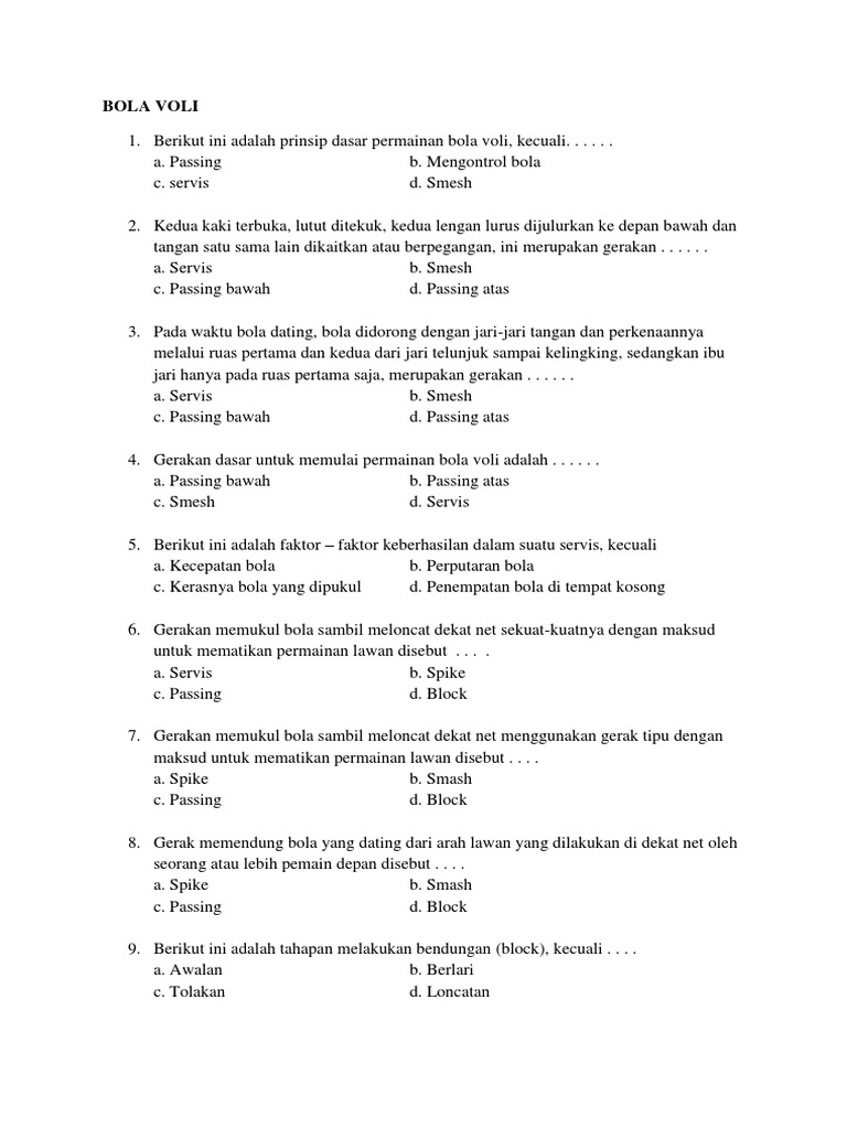 Teknik Dasar Untuk Memulai Permainan Bola Voli Adalah Brainly Co Id from id-static.z-dn.net Gerakan lengan yang benar saat melakukan servis bawah. Selain itu, servis juga adalah awalan pukulan sebagai kesempatan untuk memasukkan bola ke daerah lawan. Hal tersebut pun berlaku sama pada permainan bola voli. Beberapa cara melakukan servis sebagai berikut. Mar 09, 2017 · teknik dasar spike atau smash yaitu bentuk serangan yang paling banyak digunakan dalam permainan bola voli supaya suatu tim mendapatkan banyak poin. Blok merupakan gerak dasar permainan bola voli yang. Teknik dasar block (bendungan) yaitu mencegah serangan lawan dengan cara membendung. Apakah bola voli merupakan permainan tempo yang cepat?